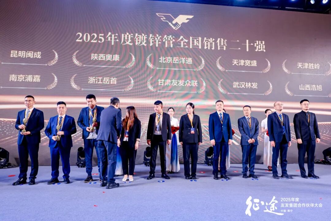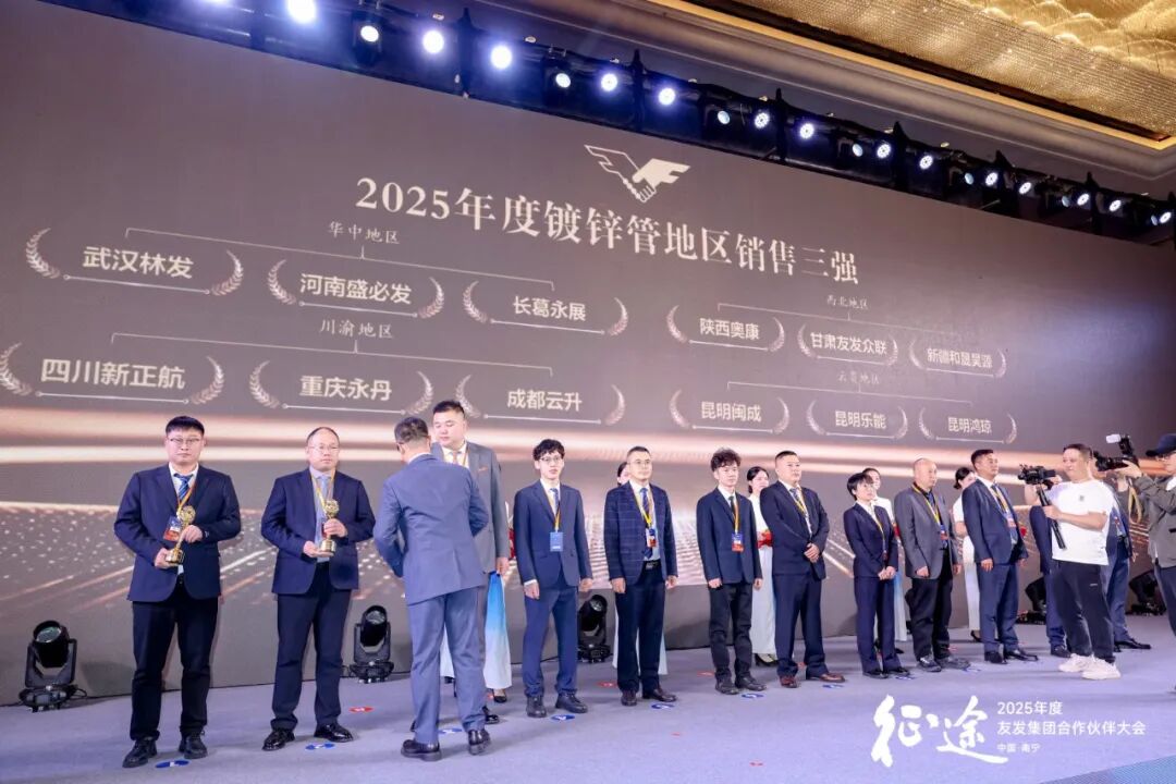 (图)2025年度友发集团合作伙伴大会颁奖现场 在本次大会的荣誉表彰环节,林发钢铁凭借过去一年在业绩增长与模式创新方面的扎实表现,荣获友发集团颁发的“2025年度镀锌管全国销售二十强”、“2025年度华中地区镀锌管销售三强”、“2025年度模式创新奖十强”以及邯郸市友发钢管有限公司颁发的“热镀锌圆管销售十强”、“热镀锌方管销售十强”等重磅奖项。这份荣誉,是对公司团队不懈努力与专业能力的充分肯定,也为我们未来的发展注入了更强信心。