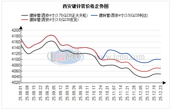 今日西安市场焊接钢管价格平稳运行,成交一般。兰格钢铁云商平台监测数据显示,截至2025年12月24日,西安焊接钢管价格:4寸(3.75)焊管过磅含税价:西安友发报价3470元(吨价,下同),正大报3470元,比上一个交易日价格稳;4寸(3.75) 镀锌管过磅含税价:西安友发报价4070元,利达报价4100元,正大报价4050元,比上个一个交易日价格稳。