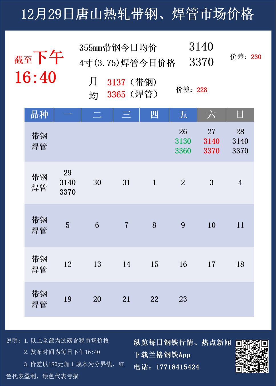 • 12月29日(16:40)唐山热轧带钢与焊管市场成交价格