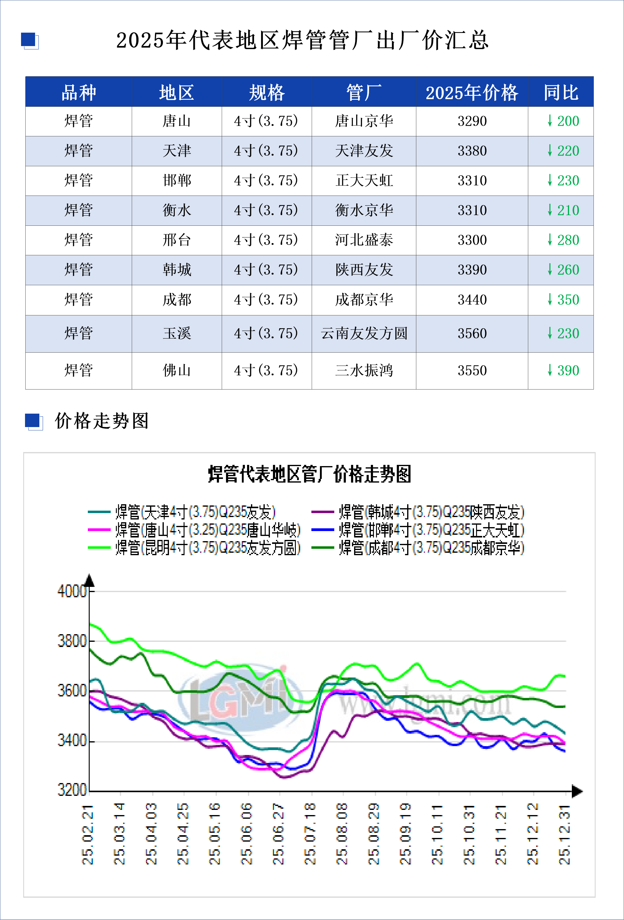 • 2025年国内代表地区焊管管厂出厂价汇总