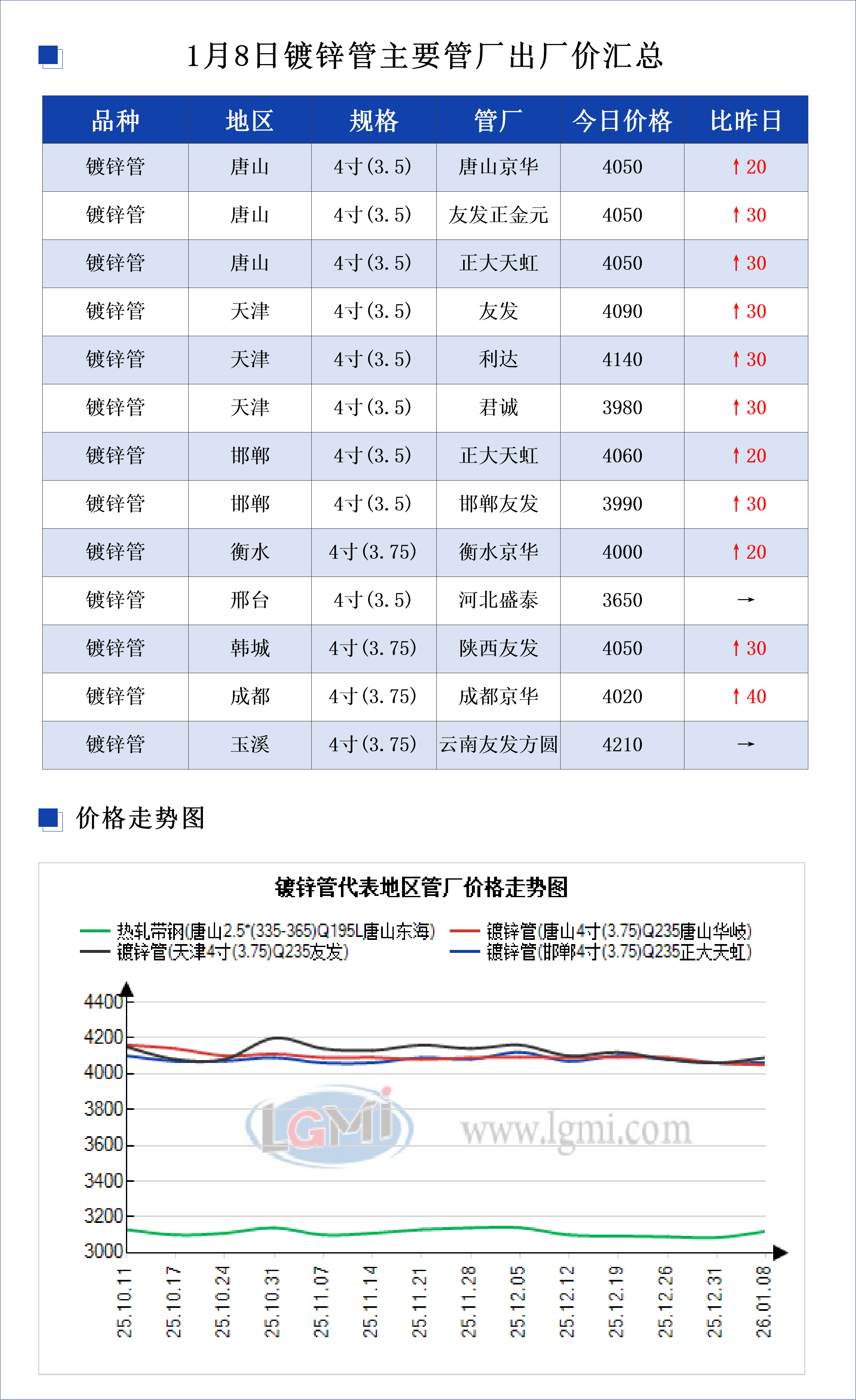 • 2025年国内代表地区镀锌管管厂出厂价汇总