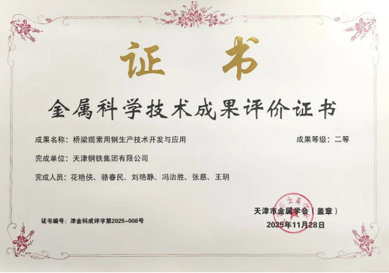 近日,天津市金属学会发布2025年度科技成果评价结果,天钢公司三个项目分别荣获一等奖、二等奖、三等奖,充分展现了在钢铁材料与绿色制造领域的技术创新实力。 天钢公司本次获奖项目覆盖烧结工艺、特种钢材、绿色生产三大关键领域。 “铁矿粉绿色低碳烧结集成创新技术研发与应用”