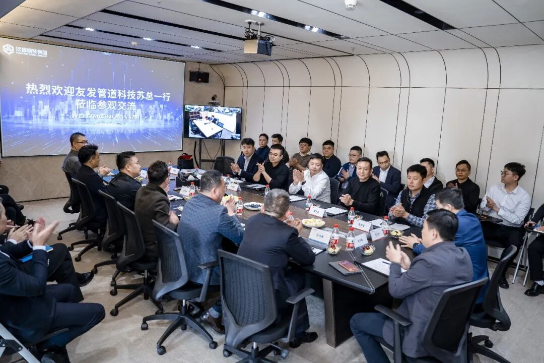 2026年1月14日,汉鑫集团迎来了战略合作伙伴——友发管道科技有限公司总经理苏九川、常务副总经理姜继生、副总经理赵文生等管理团队一行的到访交流。此次来访交流,不仅是对2025年度双方合作成果的回顾与嘉奖,更是围绕水务市场、市场推广与产品技术协同等议题开展,深化战略协同。 高层团队交流:从战略共识到行动共进