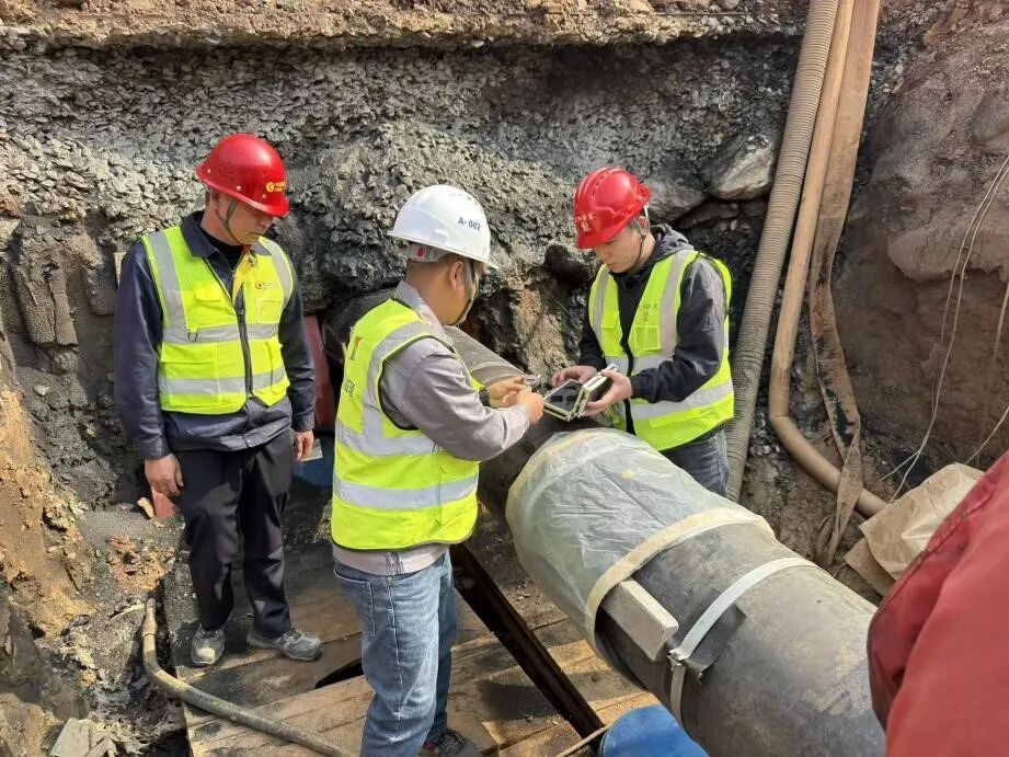 长沙机场改扩建供油工程中轴大道段因开挖深度深、地下水位高、分段与交叉作业复杂等痛点,属于难度较大的深基坑超危大工程。施工期间,湖南分公司领导多次赴现场督导,项目团队严格落实安全技术规范,通过挖设排水沟降水、钢板桩支护、第三方基坑监测等核心工艺,实施全过程动态监控,有效控制地下水位与土体变形,保障焊接质量与基坑安全,各参建单位协同发力实现工序无缝衔接。