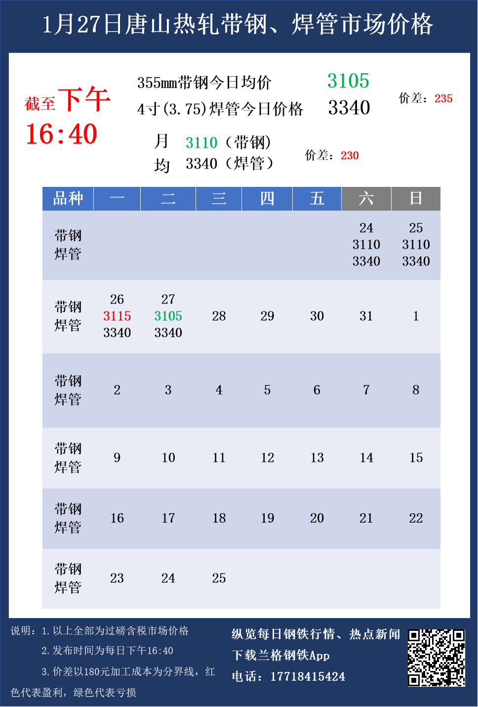 • 1月27日(16:40)唐山热轧带钢与焊管市场成交价格