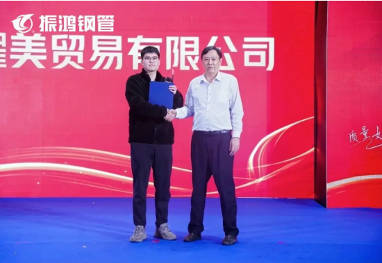 随后,3家战略合作伙伴代表依次登台发言。各位代表结合与振鸿钢管的合作历程,细数并肩奋斗的点滴,既感恩振鸿优质产品与贴心服务的坚实支撑,更点赞双方彼此信任、携手共赢的深厚情谊;同时畅谈2026年合作愿景,纷纷表示将与振鸿同心同向、深耕市场,以更紧密的联动、更务实的行动,共拓发展新空间、共谱合作新篇章,言语间满是对未来共赢的坚定信心。