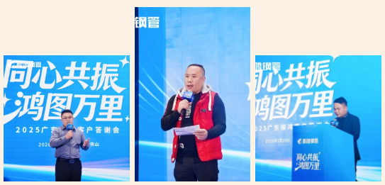“市场浪潮跌宕起伏,行业转型步履不停,振鸿钢管能在2025年实现稳健增长,离不开每一位伙伴的鼎力支持与同心同行。大家都知道,一个人可以走得很快,但一群人可以走得更远、更稳。展望2026,愿我们继续心相连、情相融,同心共创美好未来!”广东振鸿事业部总经理叶卓林先生在致辞中深情说道。他表示,振鸿钢管始终坚守“质量是根、诚信为本”的经营宗旨,以更优质的产品、更贴心的服务回馈所有伙伴的厚爱。