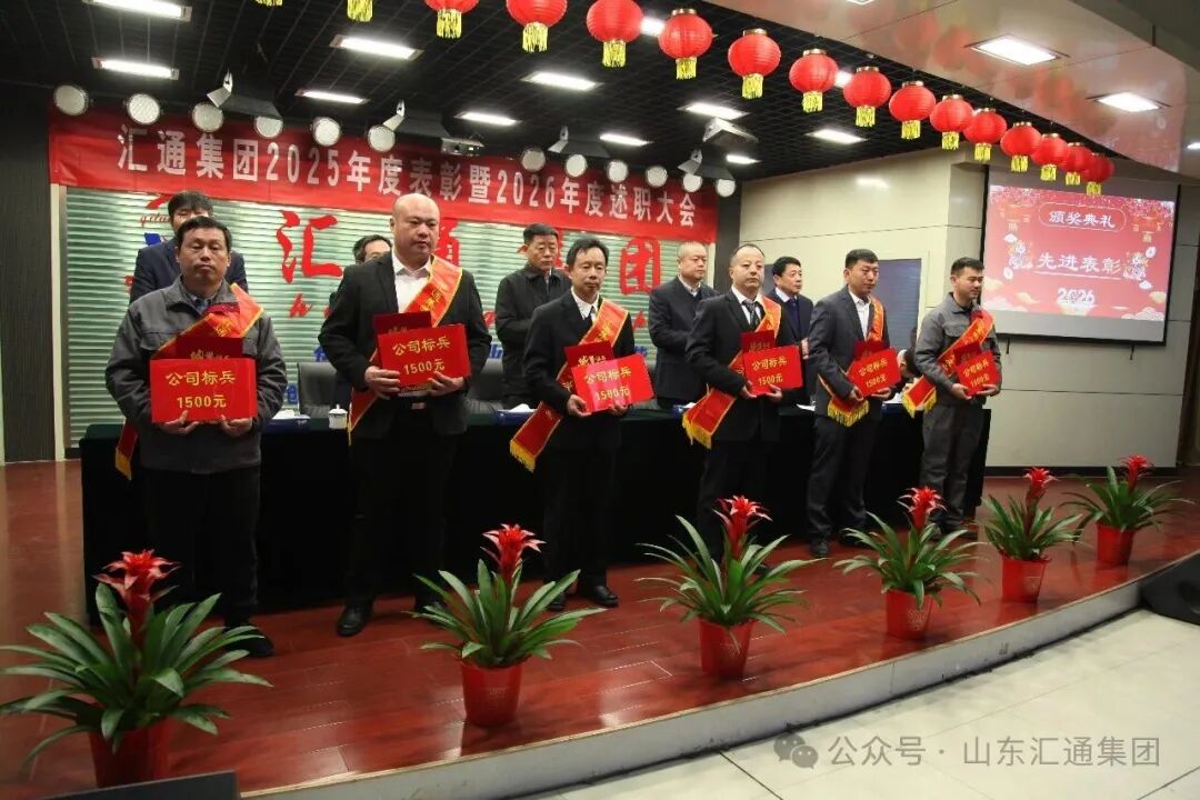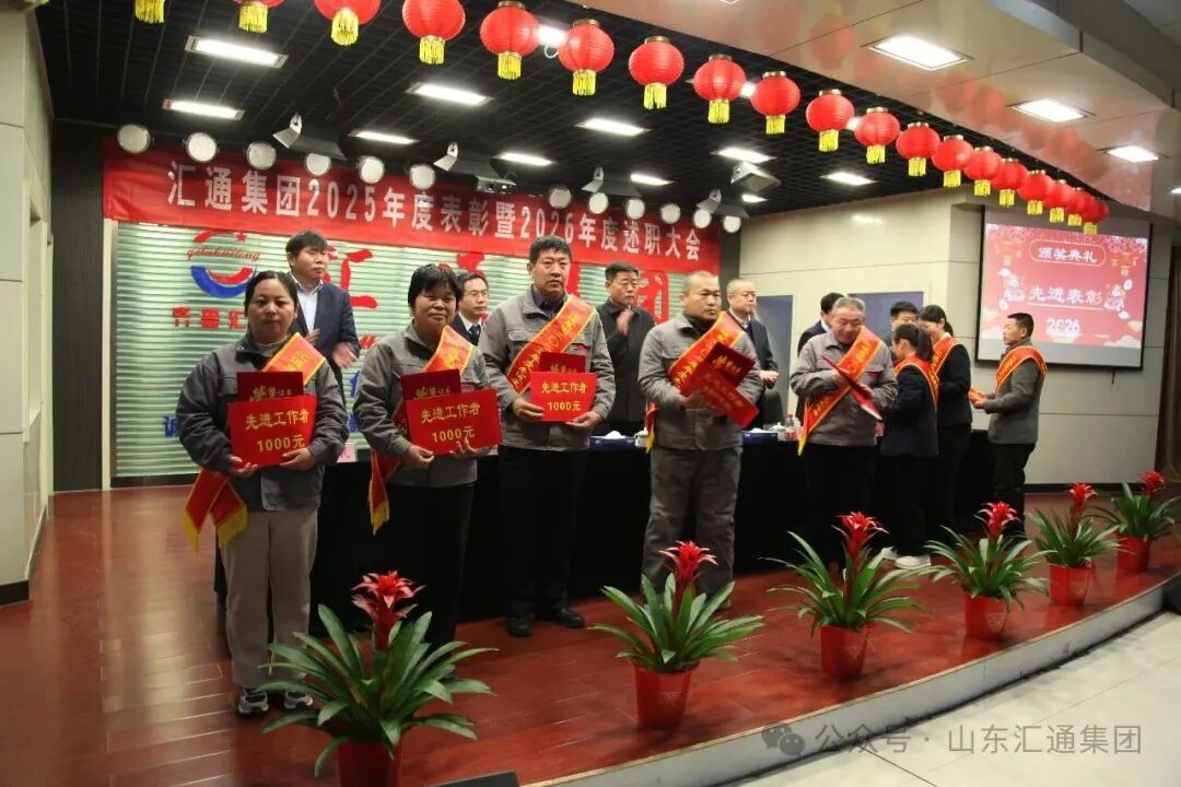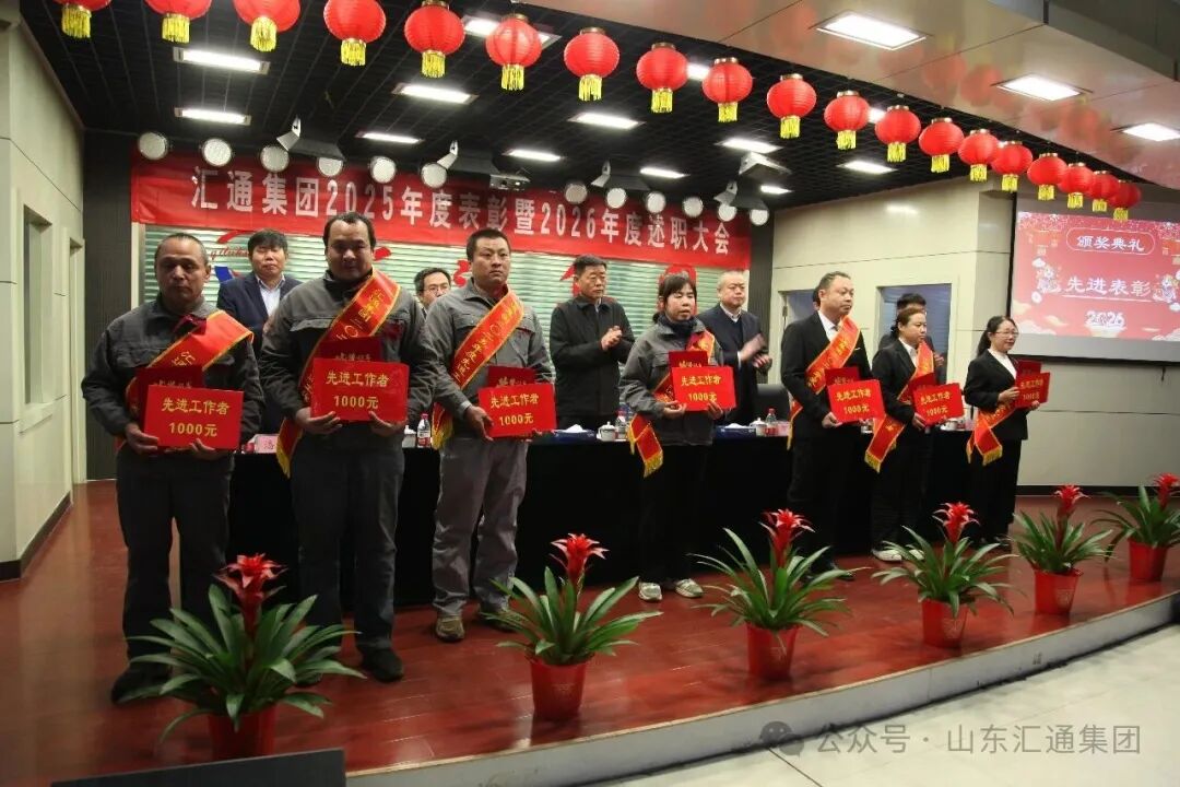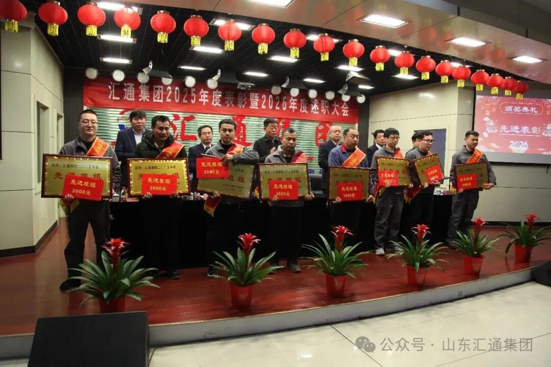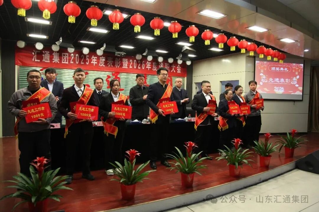 表彰树榜样 荣耀致奋斗 集团高层领导为2025年度先进班组、先进个人等荣誉获得者现场颁奖。一份份荣誉,见证着全体员工的坚守与付出;一次次掌声,致敬每一位拼搏奋进的汇通奋斗者。榜样引领前行,激励全体员工以先进为标杆,立足岗位、奋勇争先,在各条战线再创佳绩。