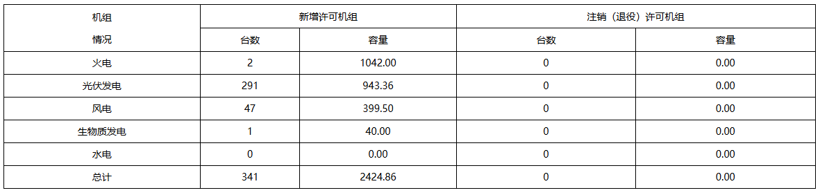 (二)2月份发电许可机组情况 单位:MW