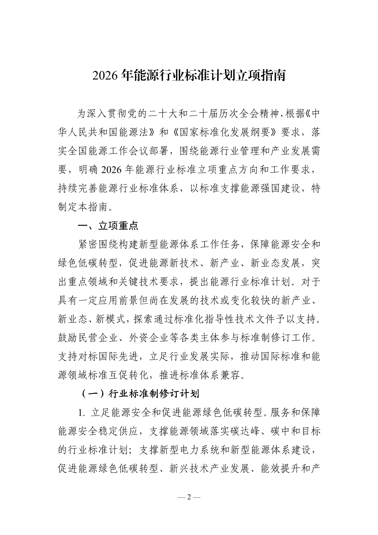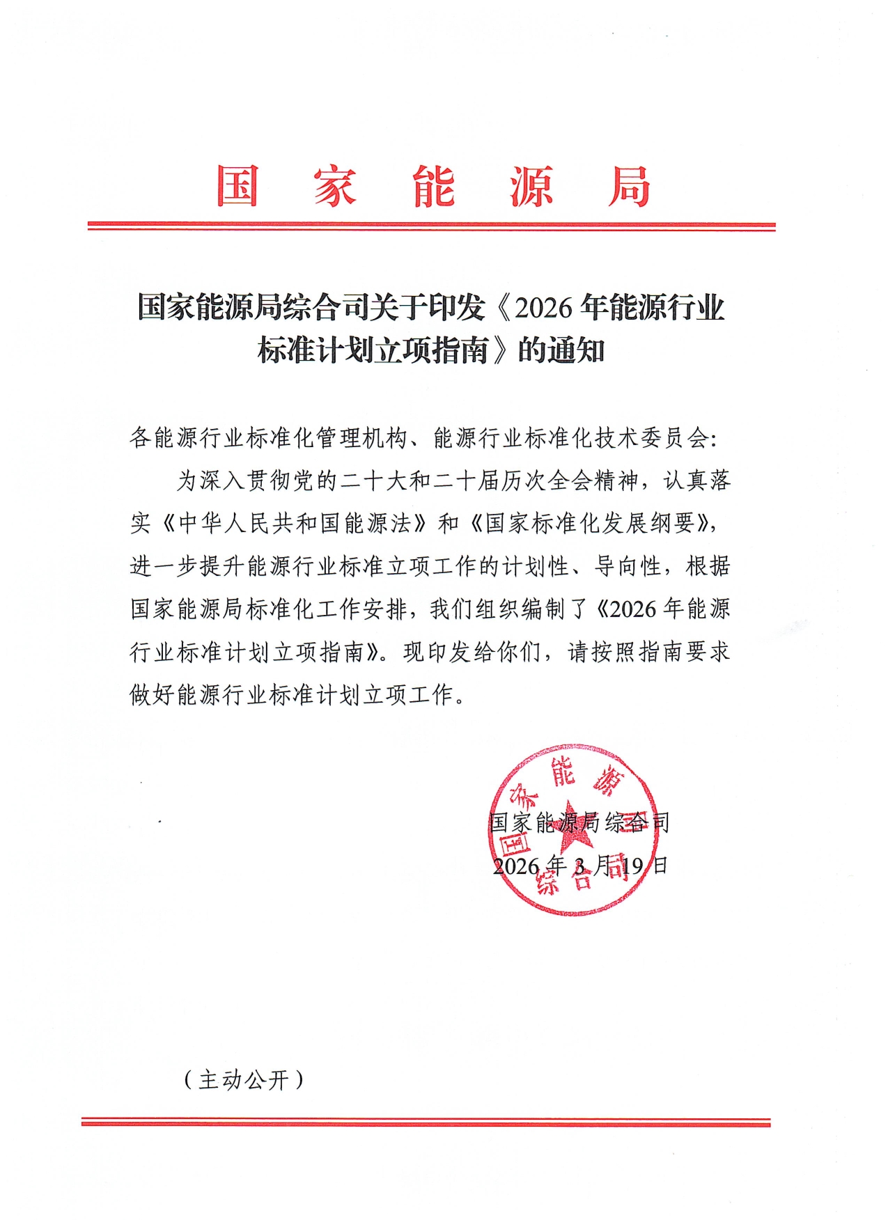 国家能源局印发《2026年能源行业标准计划立项指南》