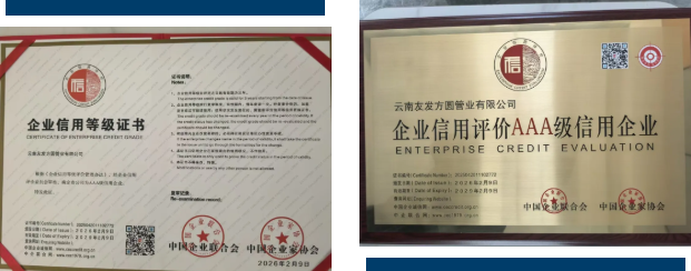 企业信用评价AAA级等级证书是企业信用评价体系中的高等级认证,代表企业在经营管理水平、履约能力、财务状况、社会信誉及发展前景等方面达到行业领先水平。 此次获评AAA级企业信用等级证书,不仅是对云南友发方圆综合实力的充分认可,更是对企业长期坚持诚信经营理念的高度肯定。 荣誉既是鼓励,更是责任。云南友发方圆将继续秉承诚信经营理念,持续提升产品品质与服务水平,加快创新发展步伐,不断增强企业综合竞争实力,为推动行业高质量发展作出新的更大贡献。 |