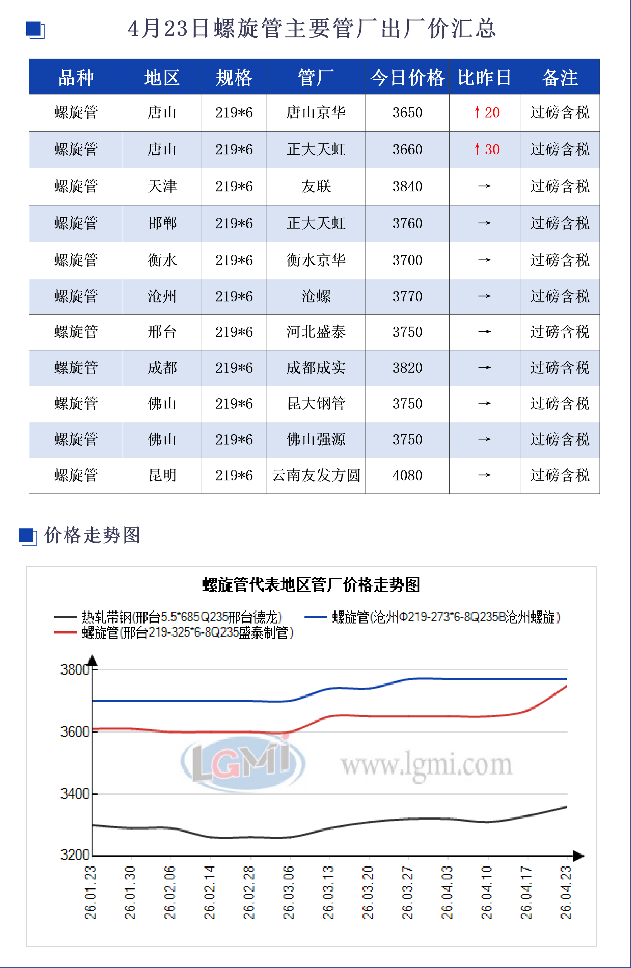 • 4月23日螺旋管主要地区管厂出厂价汇总