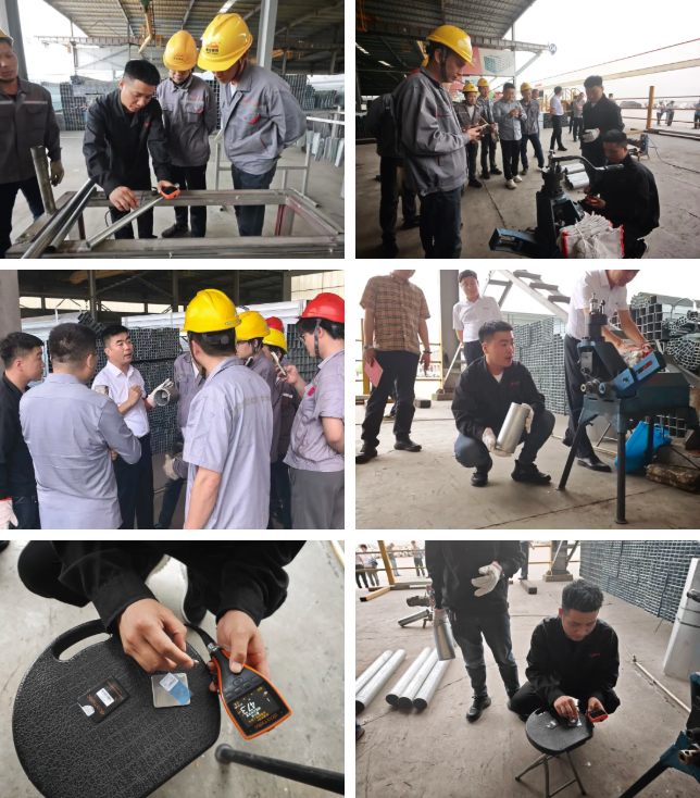 最后由邯郸友发质检主任叶增华、李波开展实操培训,现场指导压槽、截管、锌层测量、壁厚测量等实操技能,经销商们纷纷上手进行实操,培训结束后大家表示这种培训效果很好,能够得到一对一的解答,更加简单明了的学习到专业知识,培训尾声全体人员合影留念。