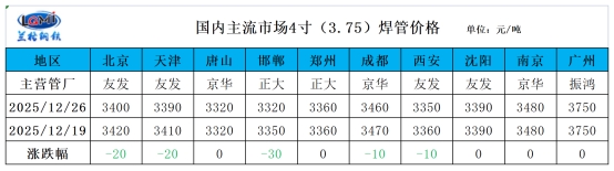 - 12月26日国内4寸焊管价格汇总[12.26]