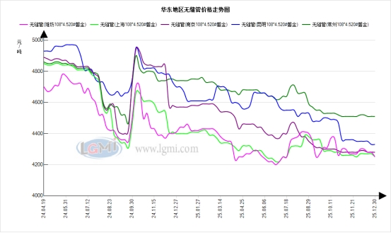 - 华东地区无缝管十二月下旬供需维稳 价[12.31]